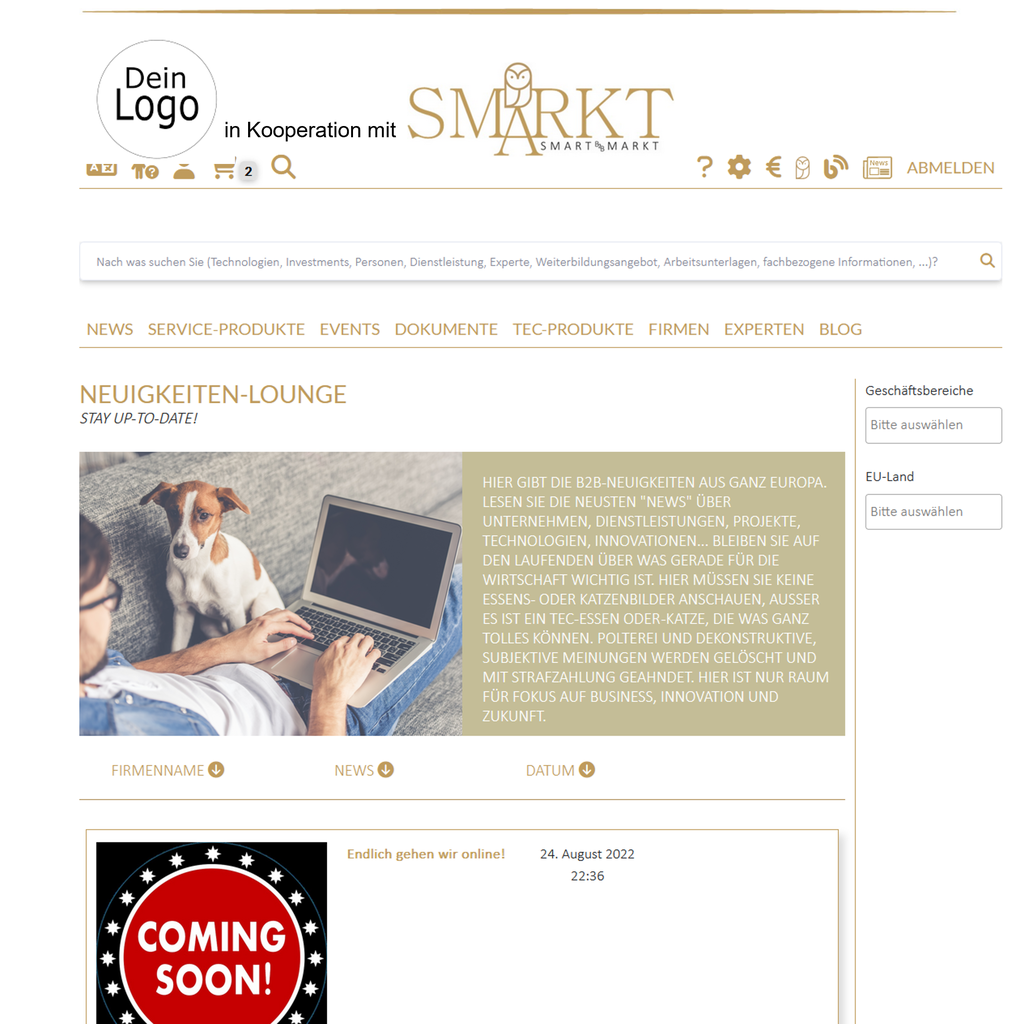 • Kostenlose Werbung: Platzierung Ihres Logos auf der Startseite von www.smarktb2b.com.