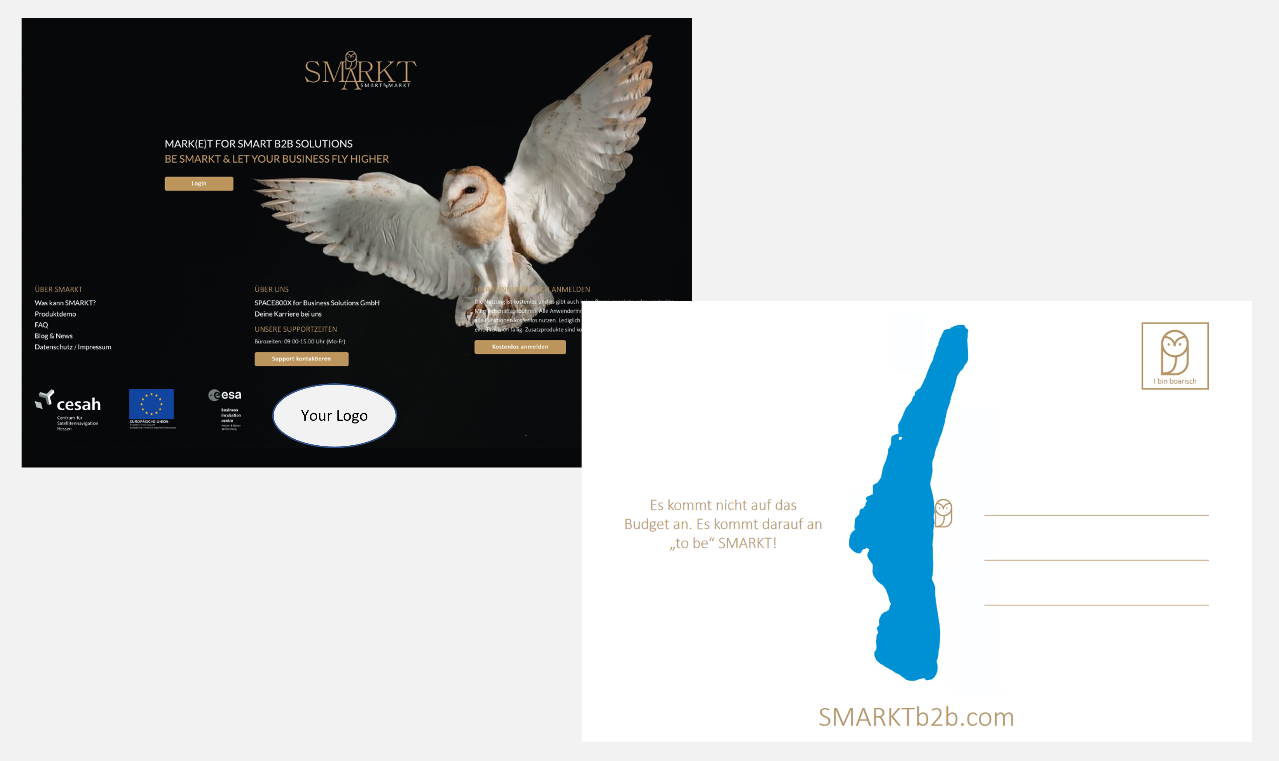 • Kostenloses Werbematerial: Erhalten Sie SMARKT-Postkarten mit Ihrem eigenen Logo.